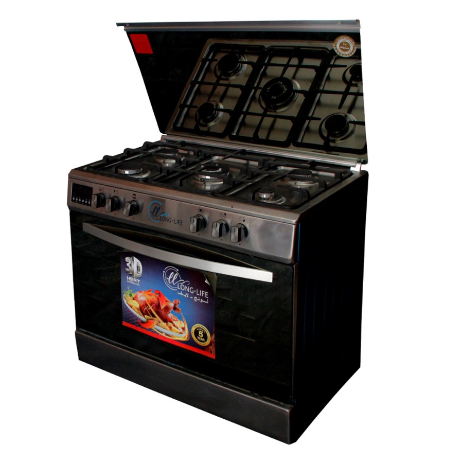 بوتجاز الأمان الكامل يحتوي على نظام حماية متطور ضد تسرب الغاز وإشعال ذاتي لجميع المكونات (السطح، الفرن، الشواية)
